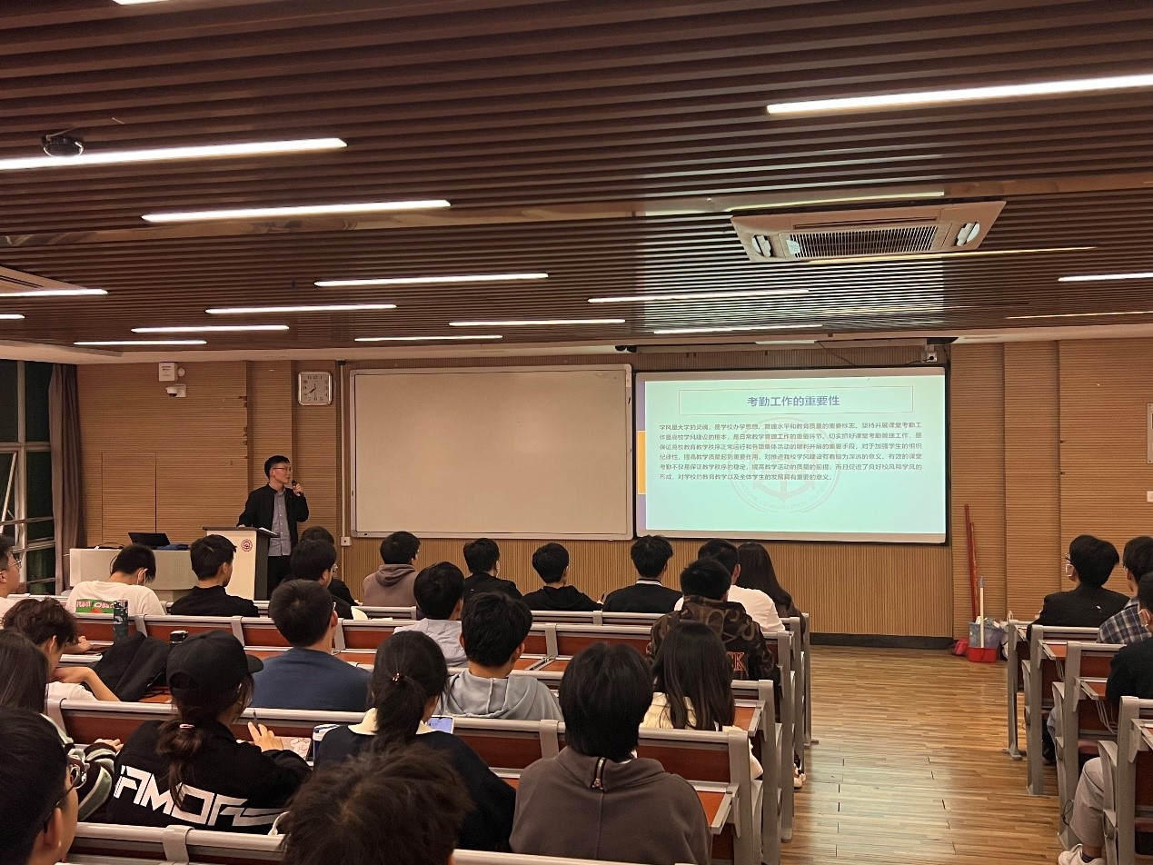 随后,陈龙老师对我院2023年春季学期学风建设工作安排进行了详细介绍,强调本学期将严格执行考勤制度,规范考勤流程、及时准确通报缺勤情况、严格执行请销假手续等,学院领导、辅导员、班主任老师将进一步加强课堂、宿舍和早读晚修的纪律检查力度。