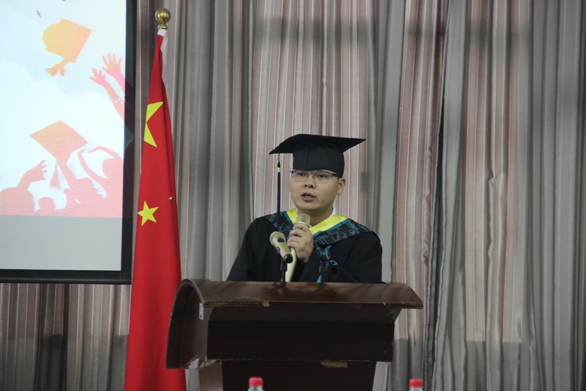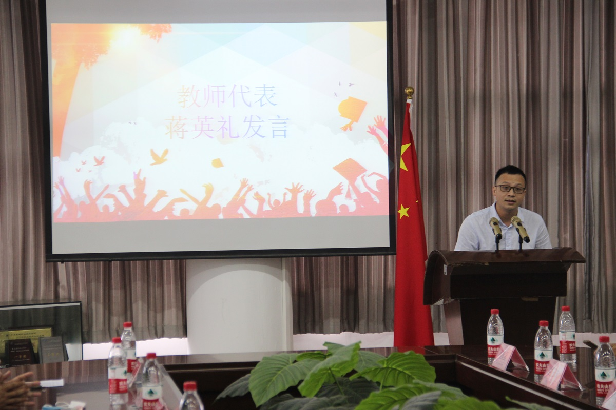 教师代表蒋英礼副院长也发表了热情洋溢的讲话。作为班主任,他回顾了这四年与同学们相处的一些难忘瞬间,并给毕业生们送上了殷切祝福。毕业生谢林师作为学生代表发言,他感恩两校的共同培育,感恩师长,感恩同学的理解与包容,感恩成长及相伴的四年时光,并表示会带着知识的沉淀,回报社会,奔赴未来。