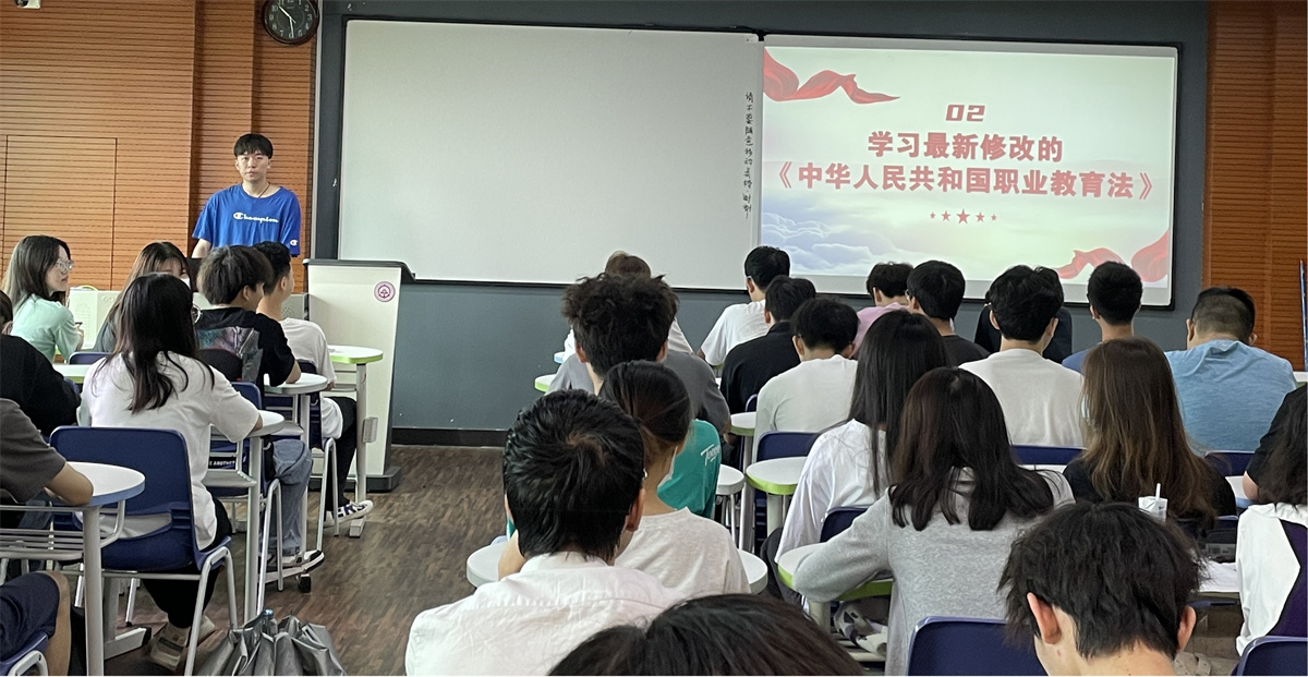 新修订的《中华人民共和国职业教育法》于5月1日起实施,为切实做好新修订的职业教育法的普法宣传工作,也为更好帮助学生了解职业教育环境,明确学习的目标和方向,土木工程学院团委于5月12日-16日期间,组织各团支部以主题班会形式,开展学习新修订的《中华人民共和国职业教育法》活动。学院共53个班级参与,覆盖2000余名同学。通过此次学习,使同学们能更充分地了解职业教育的相关政策法规,对学生的专业学习也起到了一定的积极影响。
