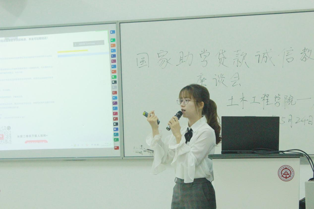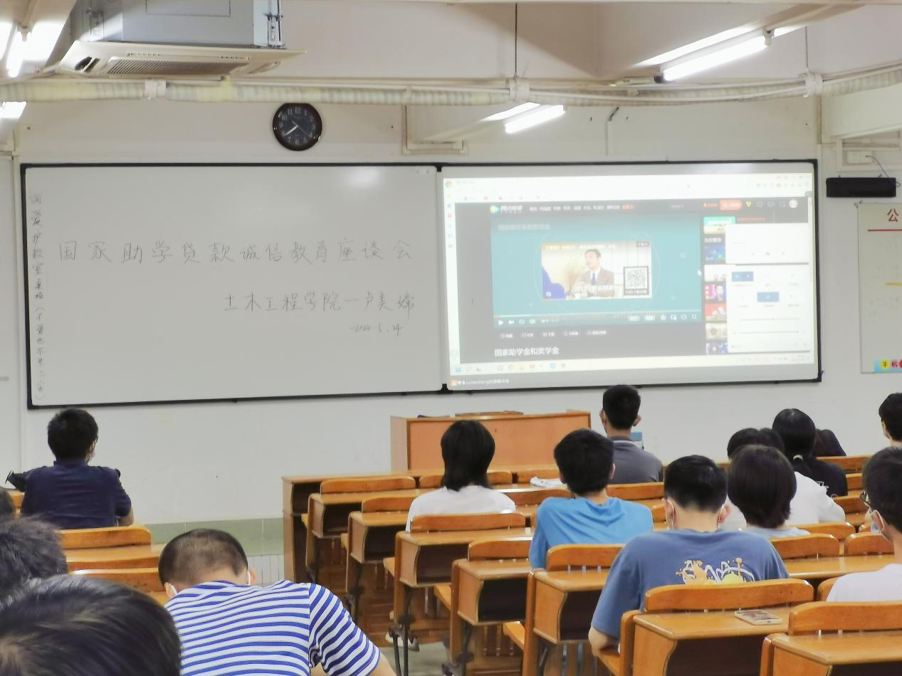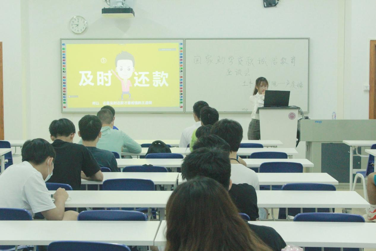 为做好2022年度国家助学贷款宣传工作,实现“不让一个学生因家庭经济困难而失学”,达到助学-解困-育人-成才-回馈社会的最终资助目的,宣传诚信资助的主题精神。土木工程学院于2022年5月24日晚上七点整,在清远校区厚德楼318课室召开“国家助学贷款诚信教育”主题座谈会,天河校区2栋801同步线上举行。主讲老师土木工程学院辅导员卢美嫦老师、土木工程学院助学贷款学生以及有申请助学贷款需求的学生参加了此次座谈会。