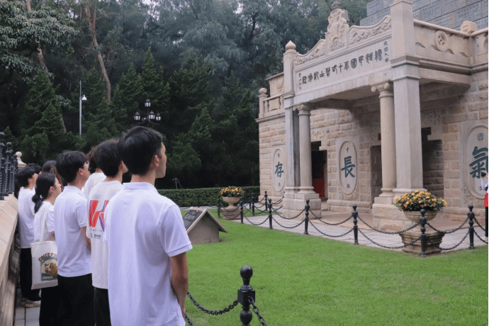 首先,队伍来到了黄花岗七十二烈士墓园。在讲解员的带领下,师生来到墓园正门处,正门牌坊长31米、宽3米、高13米,门额材质为黄花石,镌刻着四个贴金大字——“浩气长存”,为孙中山先生所题写。
