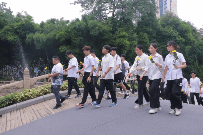 接着,师生来到七十二烈士墓碑前,进行默哀并献花。