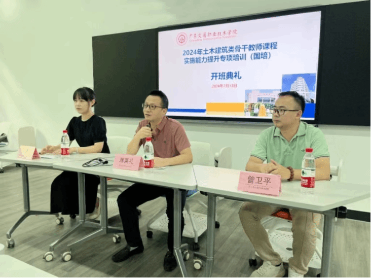 7月13日,2024年职业院校“土木建筑类骨干教师课程实施能力提升专项培训”国培班在天河校区顺利开班,参培学员共40人,本次培训由广东交通职业技术学院土木工程学院承办,开班典礼由土木工程学院副院长蒋英礼主持。