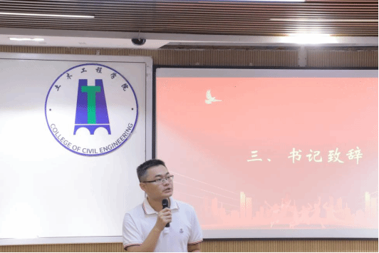 竞聘大会第一项议程由张文风书记致辞。张文风在致辞中点明了团学骨干对于高校社团、学院文化建设的重要作用,要高度重视团委学生会骨干的发掘与培养工作。同时,勉励全体团学骨干要树立正确的价值观念,以勇于担当的工作姿态成为团队成员的榜样,带动团委学生会各部门全体成员人尽其才、才尽其用。最后,要求在团委学生会保持传统活动特色的基础上,不断探索新的活动形式和内容,吸引更多参与者,为团学建设、校园文化的繁荣和学生综合素质的提升做出更大贡献。