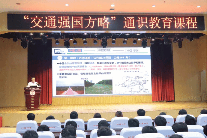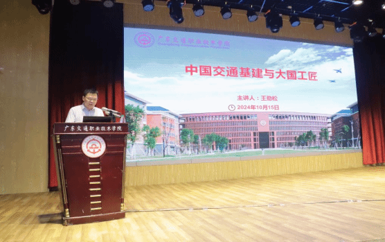 10月15日,广东交通职业技术学院在天河校区学术报告厅进行“交通强国方略”通识教育课程第二讲《中国交通基建与大国工匠》直播授课,学院副院长王劲松教授主讲。