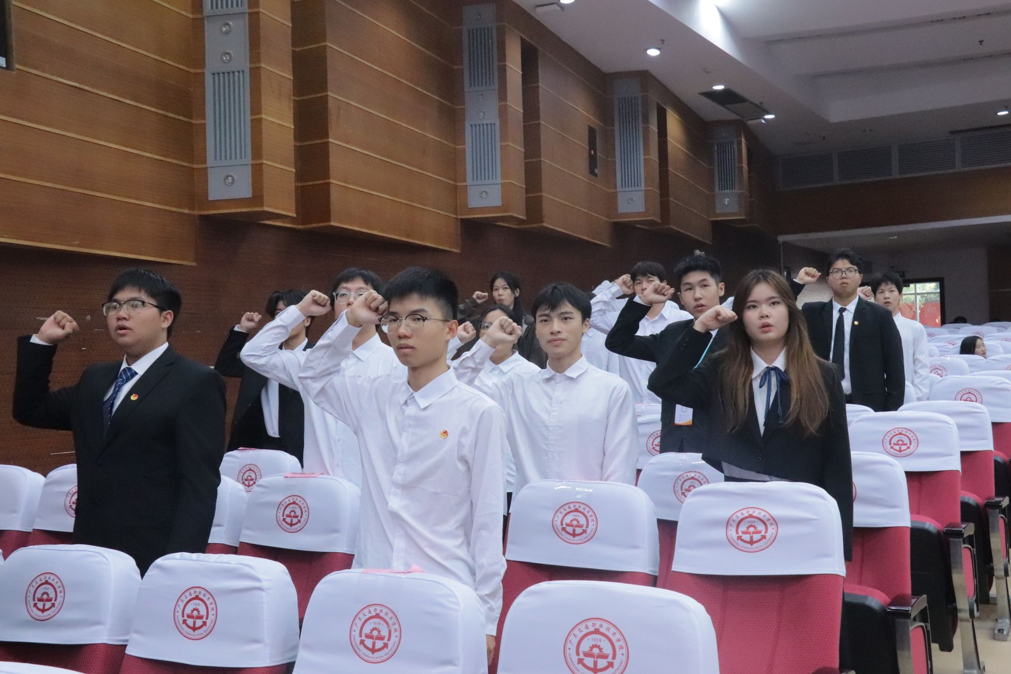 随后,新旧两届学生会主席团成员交接锦旗。大会为第十届团委学生会骨干领取聘书和优秀学生骨干荣誉证书,新一届主席团成员魏豪辉带领全体新任团委学生会部门和工作室负责人宣誓。