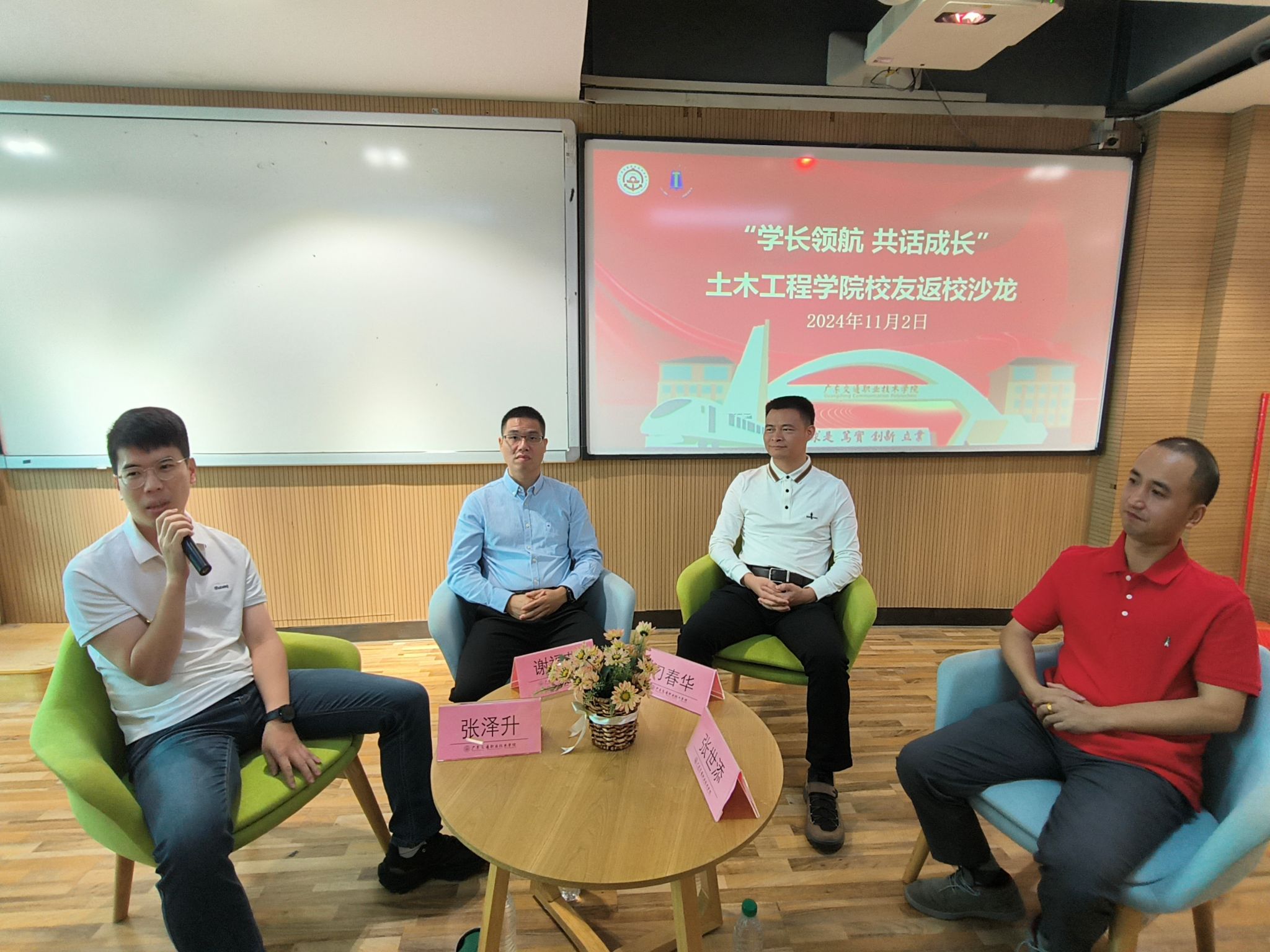 “学长领航,共话成长”主题校友创业者沙龙则为在校学生提供了一次难得的学习机会。本次活动邀请了刁春华、谢福荣、张世添和张泽升四位校友。活动中,四位成功的校友创业者分享了他们的职业历程、创业经历、影响职业发展的主要因素和人生感悟,为在校学生提供了宝贵的实战经验和专业指导。这不仅激发了在校学生的创业热情,也为他们未来的职业发展指明了方向。