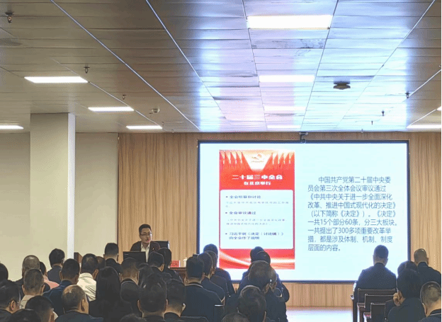 张文风的授课专题是《提高党对进一步全面深化改革、推进中国式现代化的领导水平》,主要从三个方面展开:一是中国共产党第二十届中央委员会第三次全体会议审议通过《中共中央关于进一步全面深化改革、推进中国式现代化的决定》(以下简称《决定》)的主要内容及阐释。《决定》的内容简要归纳为“一大目标”、“两大任务”、“七大聚焦”、“六大原则”、“十四大系统部署”、“一个特别强调”,并深入阐释了《决定》内容的相关背景和重要意义。二是如何聚焦全面深化改革。从理论逻辑、历史逻辑和现实逻辑三个方面分析了全面深化改革的理论支撑、改革开放取得的丰功伟绩,以及全面深化改革面临的新形势、新要求和紧迫性。三是聚焦提升干事创业领导水平。主要围绕《决定》明确提出的坚持党中央集中统一领导、深化党的建设制度改革、深入推进党风廉政建设和反腐败斗争等内容,重点分析并回应了“对于总体形势的判断”、“对于全面深化改革的认识”、“对于中国式现代化的展望”等前沿热点话题。
