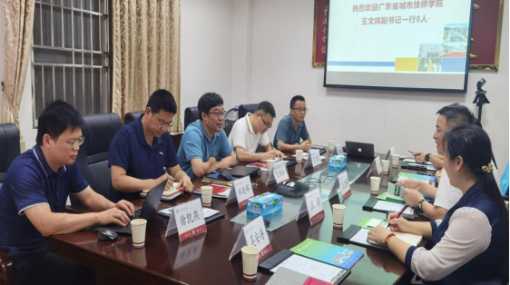 6月19日上午,广东省城市技师学院专职党委副书记王文辉、招生科科长张彩、土木工程学院院长邝青梅等一行5人莅临我院进行调研交流。学院副院长王劲松,教务部部长林晓辉,土木工程学院院长徐凯燕等班子成员热情接待并参与此次交流。