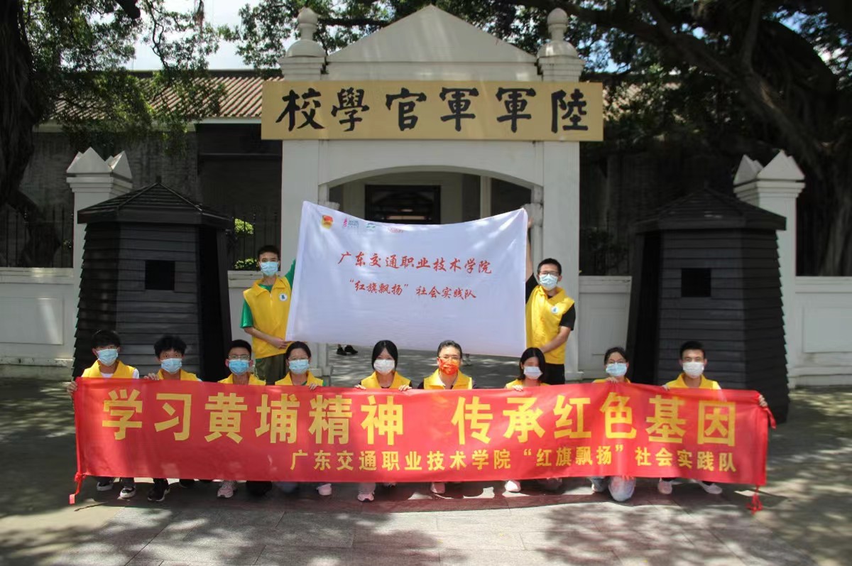“红旗飘扬”社会实践队出征 出征前,指导老师结合个人的优势长处对实践工作做出安排,实践过程中,实践队到达黄埔军校旧址纪念馆进行参观学习,在学习的过程中,队员们认真学习了解黄埔军校建立的历史背景、历史意义及国共合作的重要意义。同时队员们在学习领悟爱国主义精神过程中,也积极为参观的青少年学生进行现场讲解等。