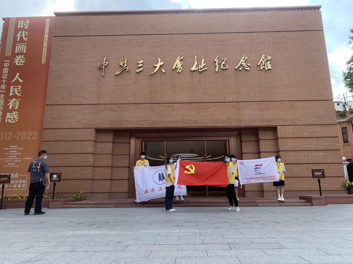 队员们参观中共三大会址纪念馆 首先实践队的队员们到达中共三大会址纪念馆,随着历史的脚步去真实的了解这段历史的进程。虽然历史的风云早已过去,但是我们不能忘记这段历史,要认识到今天的美好和平的生活来之不易。为了自己、为了祖国的明天,队员们坚定理想,从现在起,把握时机、创造辉煌,为祖国的创建美好的明天奉献自己的一份力量。 然后实践队的队员们来到达广州烈士陵园,队员们追寻这些记忆,追念先辈,不忘初心,牢记使命,站在“红色中华通讯社旧址”,同学们感慨万千。新华社因党而生,为人民而立,随时代而兴!站在时代的新起点,队员一起立下了青春的誓言:强国有我,助力祖国建设。