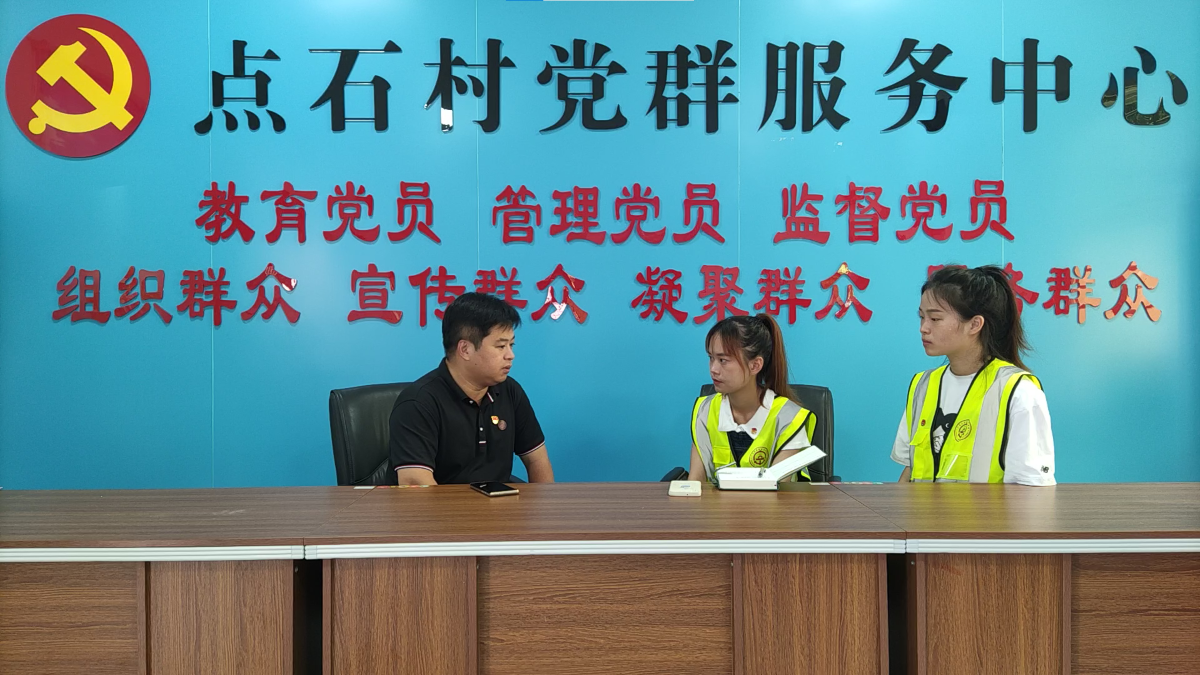 16日,实践队两名线下队员来到点石村党群服务中心,对驻村第一书记陈汉澄进行了访谈。