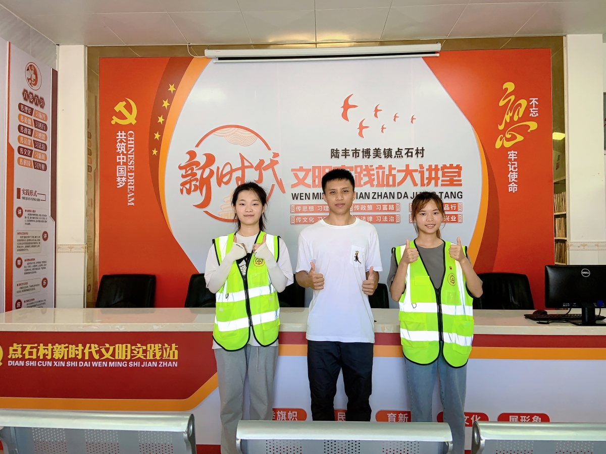 14日上午,两名实践队线下队员来到点石村新时代文明实践站参观学习。