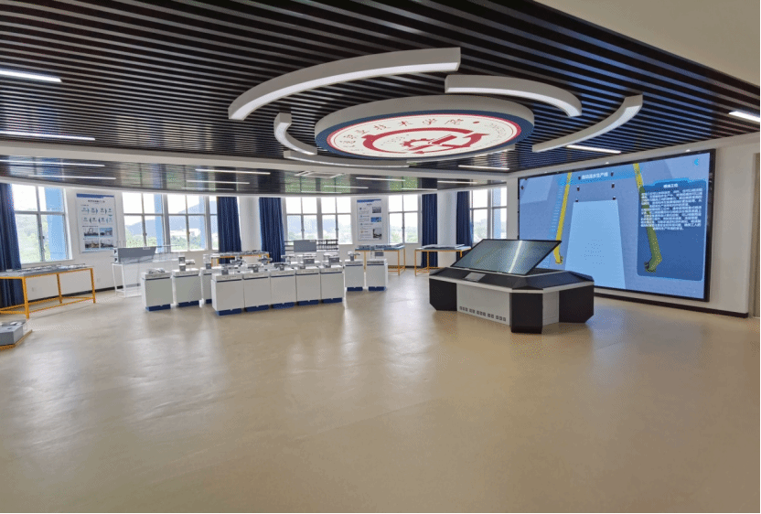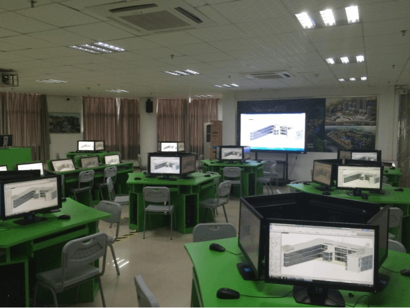 基于云计算的BIM采集、三维建模仿真施工实训室,通过配置57台高性能的电脑工作站、一台测程达几十米、可进行点云处理的三维激光扫描仪、3D打印机、BIM平台软件、建筑施工仿真实训软件、建筑施工管理软件、结构设计软件、工程概预算软件、点云处理三维重建软件等软件,组成虚实结合的仿真施工实训室,同时可容纳50余名学生开展专业课程教学、实训和考核。