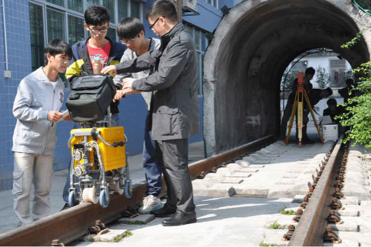 轨道工程实训室是我院土木类专业的主要实训(验)及技能鉴定场所之一。主要用于轨道线路施工与养护、轨道结构、轨道养护、隧道施工与检测等项目实训,占地面积为980平方米。主要教学仪器设备有轨检车、探伤仪、隧道地质雷达、超声波检测仪、各类养护设备和工具。